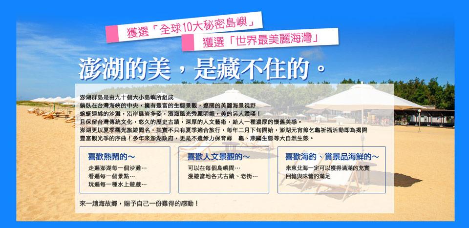 ◆《包機票、住宿、再送行程,讓您輕鬆玩翻澎湖!》